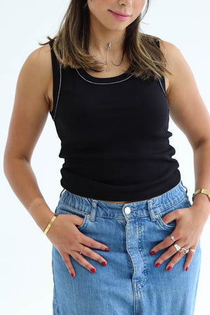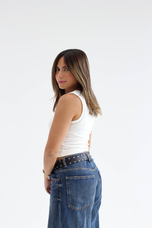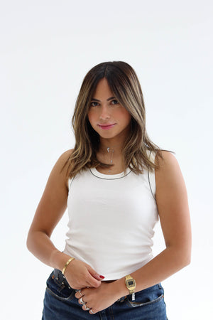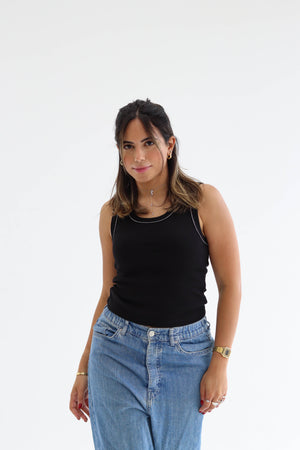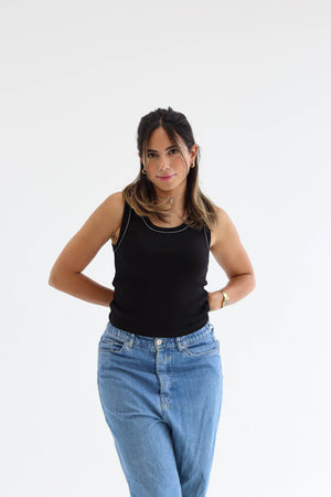Sleek and essential, the Frame Tank is cut from soft stretch cotton and detailed with contrast stitching for a subtle edge. Designed to flatter with a close fit and classic round neckline—it’s your effortless go-to for layering or standing solo.