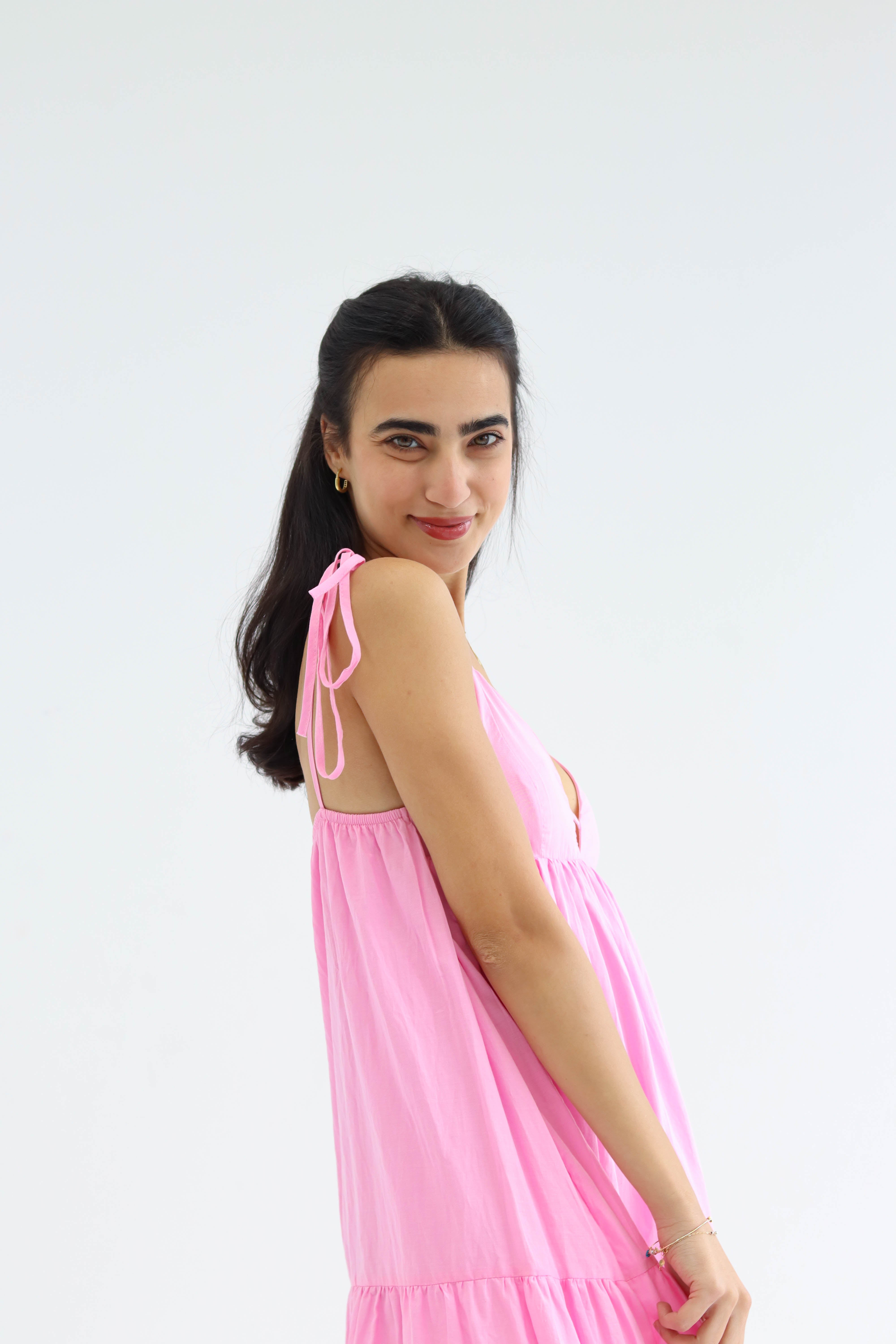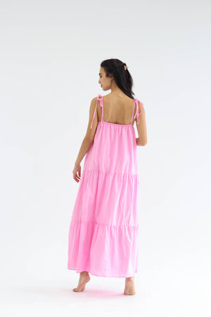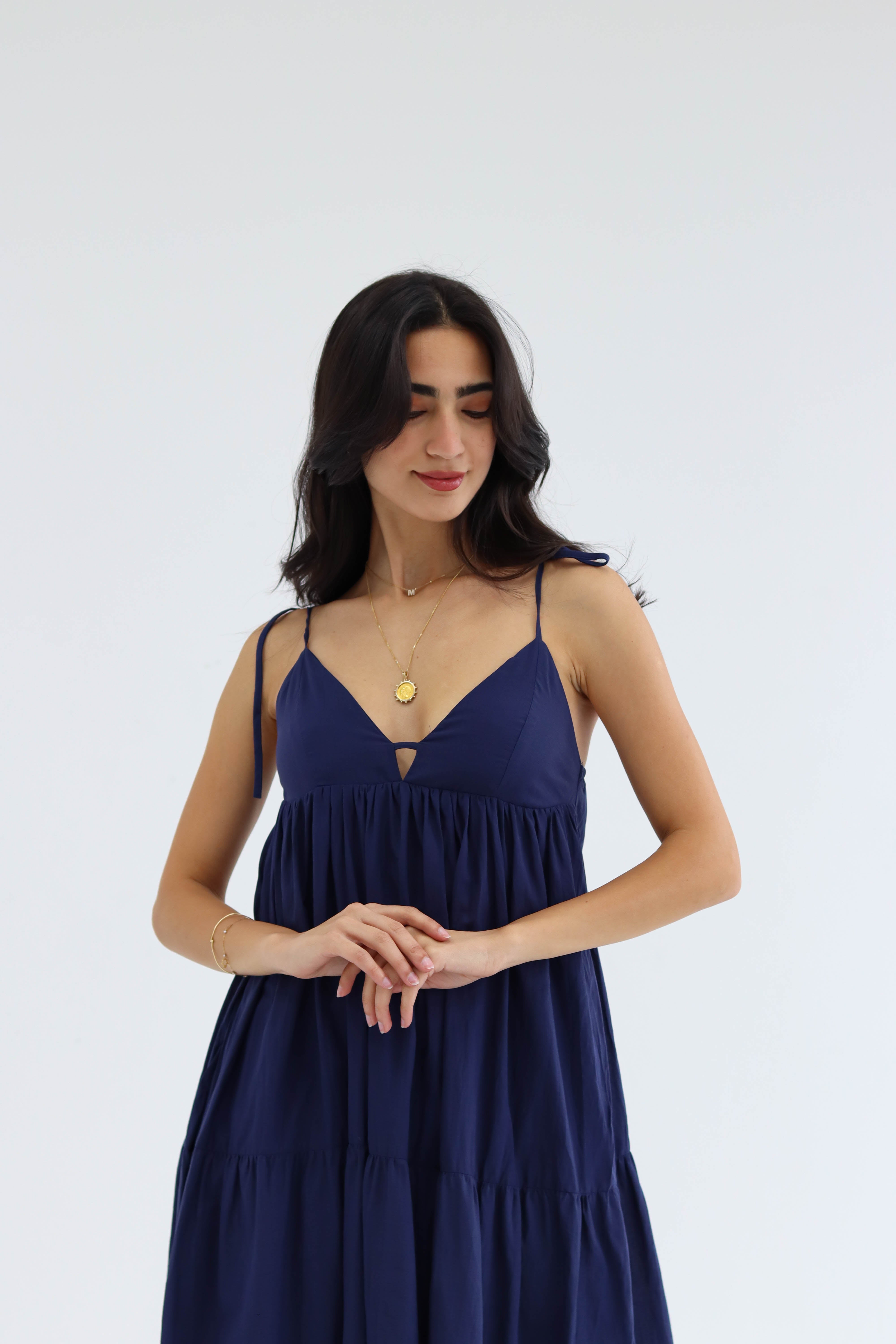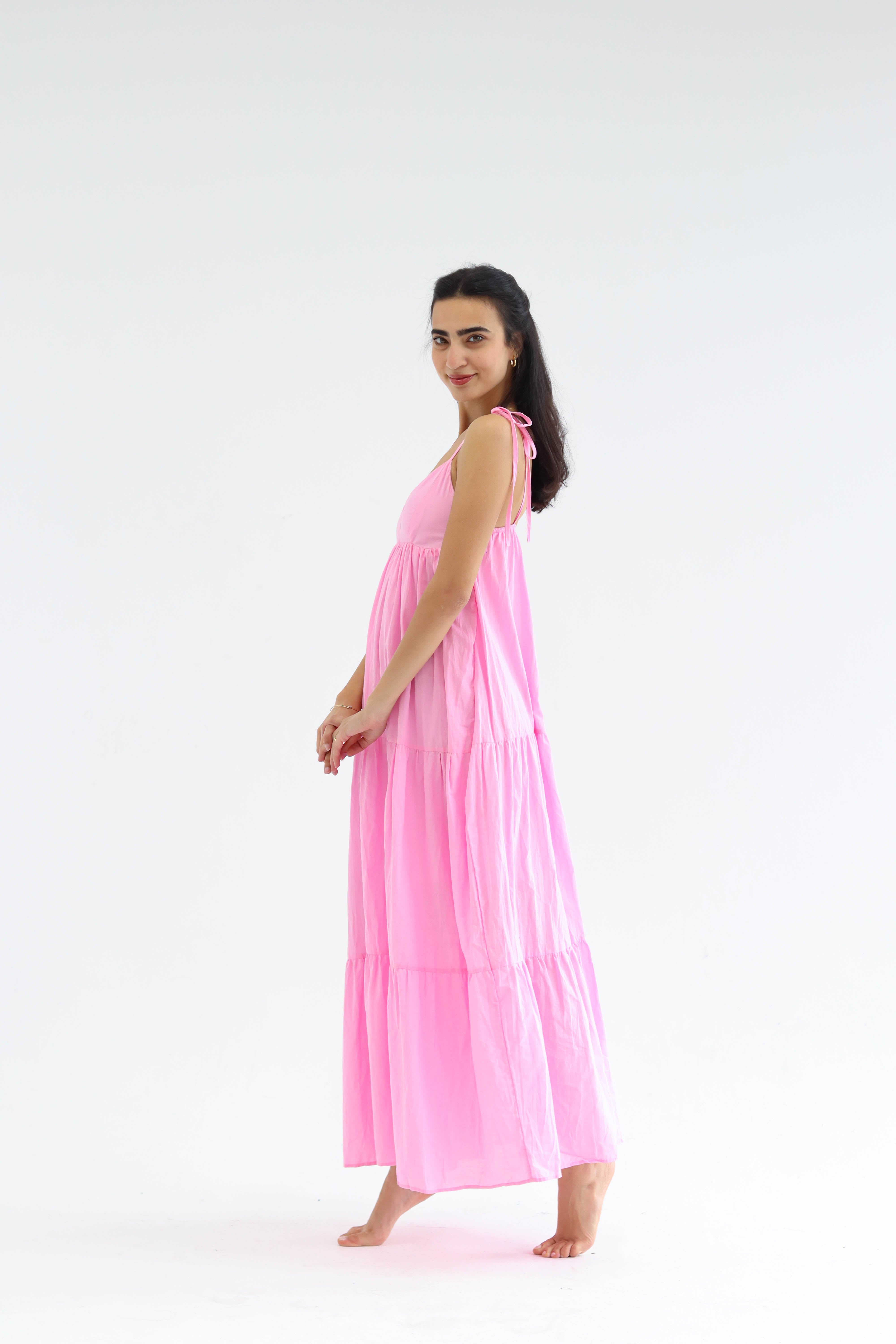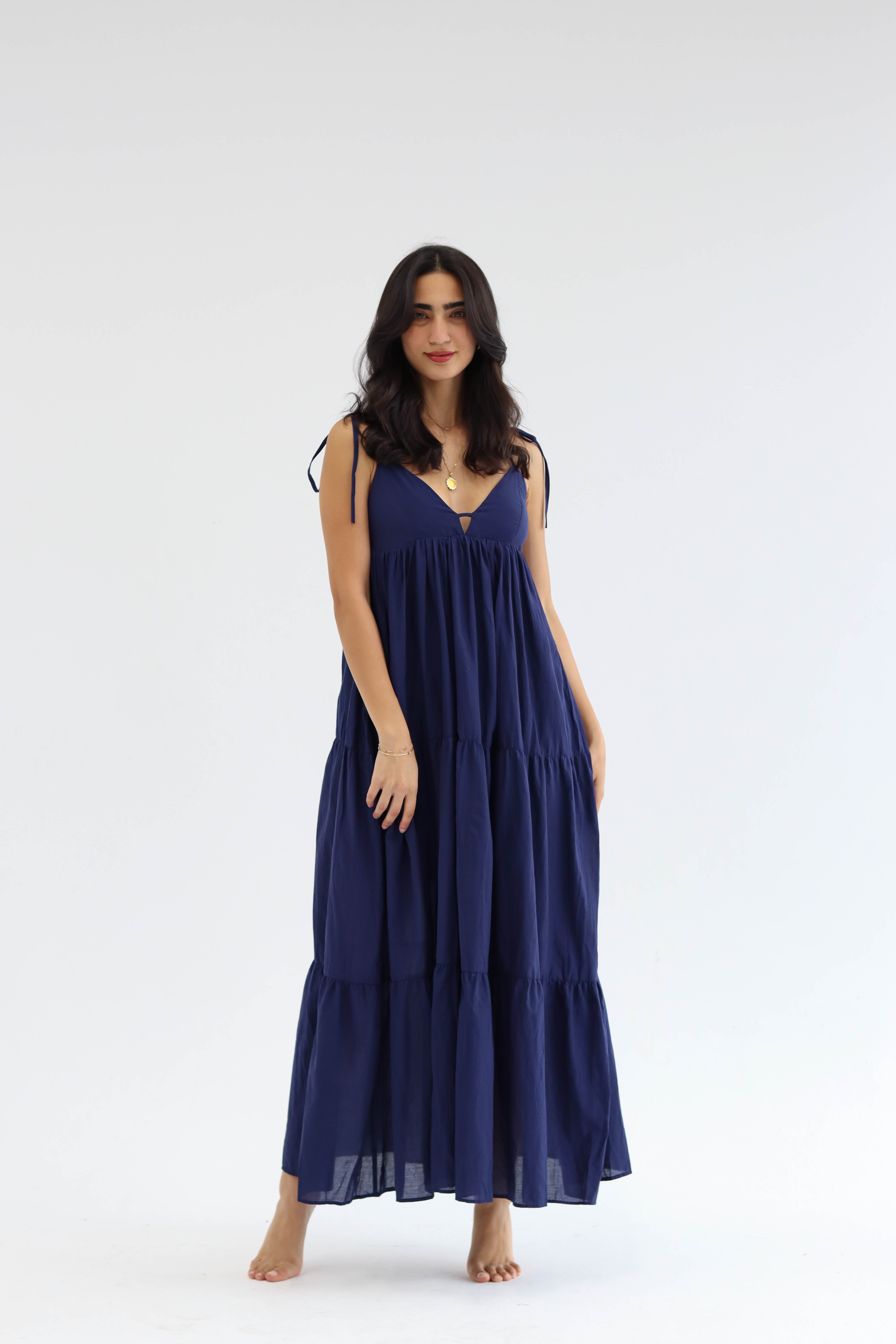 Light as air and easy to move in, this tiered maxi dress brings a sense of softness to any summer moment. With delicate tie straps and a flowy silhouette, it’s your effortless go-to for sunlit days and warm evenings.