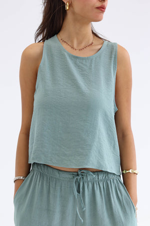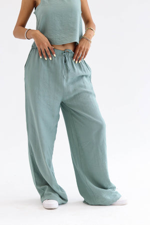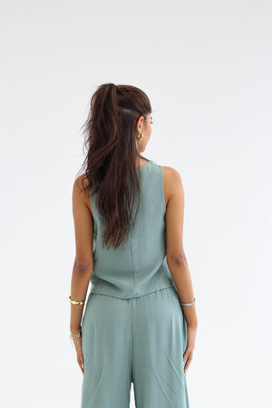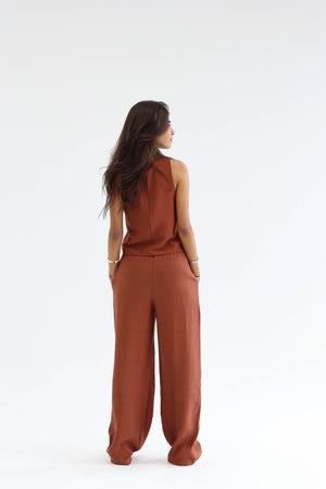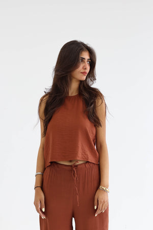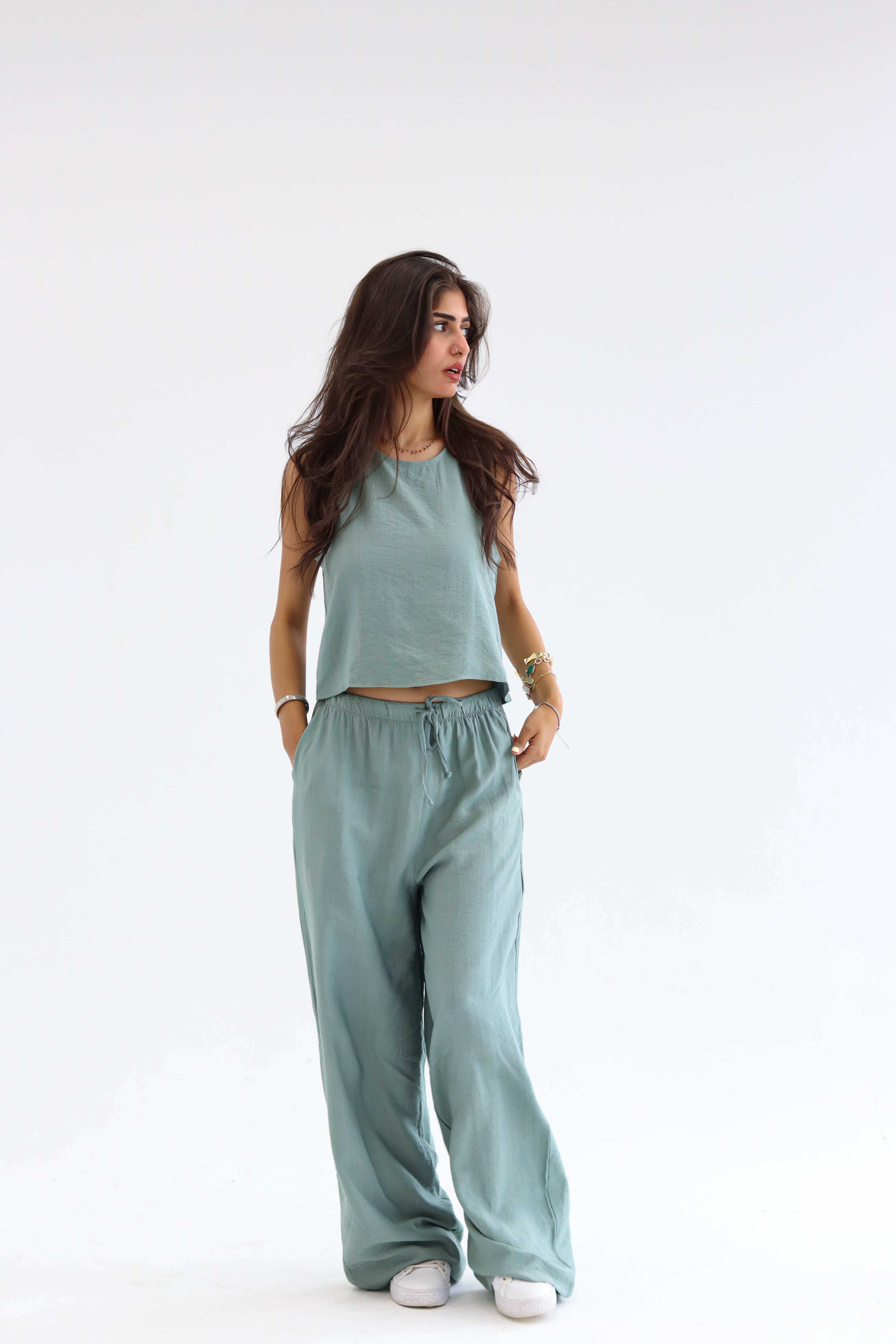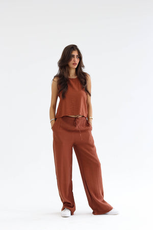 Rooted in ease and natural form, the Loam Set features a sleeveless top and wide-leg drawstring pants crafted from soft, breathable fabric. Its relaxed silhouette and earthy tone evoke quiet strength—made for days when comfort and intention move as one.