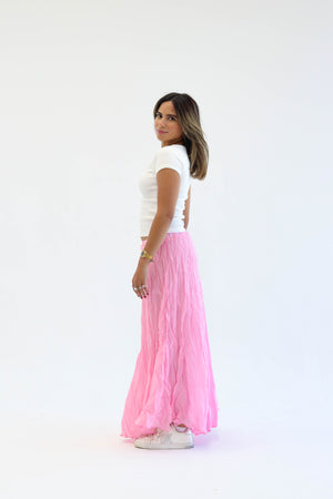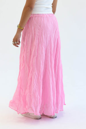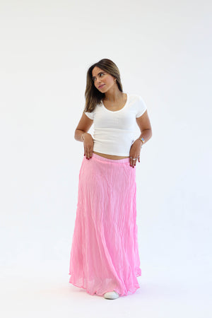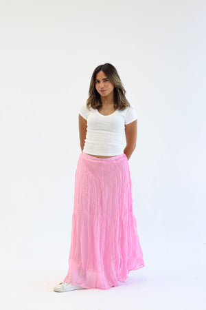 A dreamy, crinkled maxi skirt that moves with ease. Lightweight, flowy, and full of feel-good color.