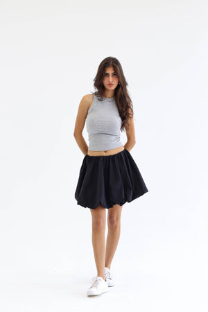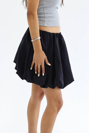 Bold volume meets playful structure in this gathered bubble mini. Designed for movement and standout style.
