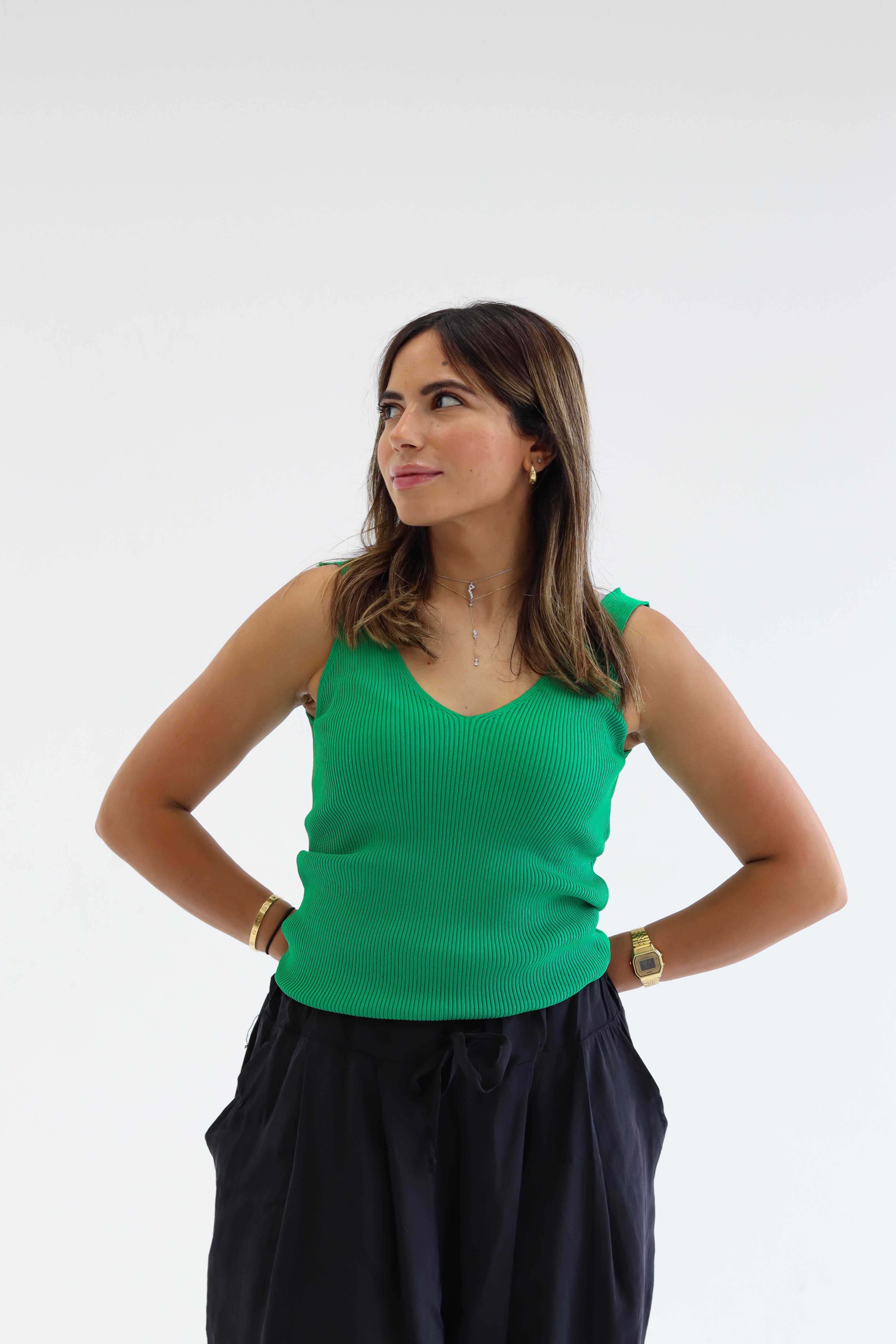 Soft structure, sculpted simplicity. The Arc Tank is made from a ribbed knit that stretches to flatter, with a curved V-neckline that draws subtle attention. Its clean finish and fluid drape make it ideal for layering or standing alone. Designed to follow your form without holding it back — this is ease, with shape.