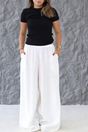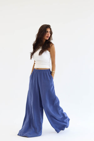 Relaxed by nature, refined by design. The Coast Pants feature a wide-leg silhouette and an easy elastic waist for comfort without compromise. Crafted from breathable fabric with fluid movement, they’re made to take you from quiet mornings to golden-hour strolls — always soft, always sure.