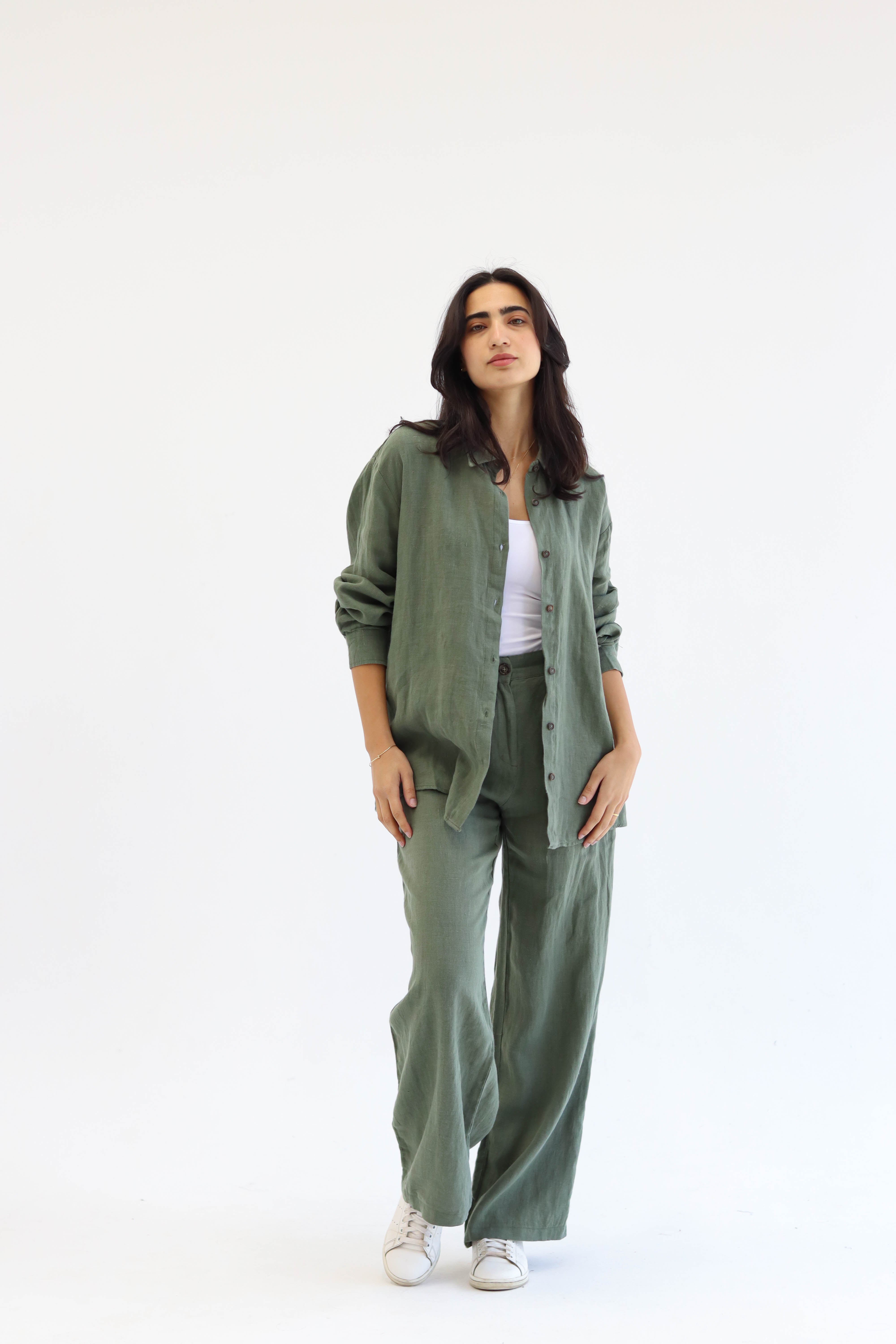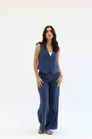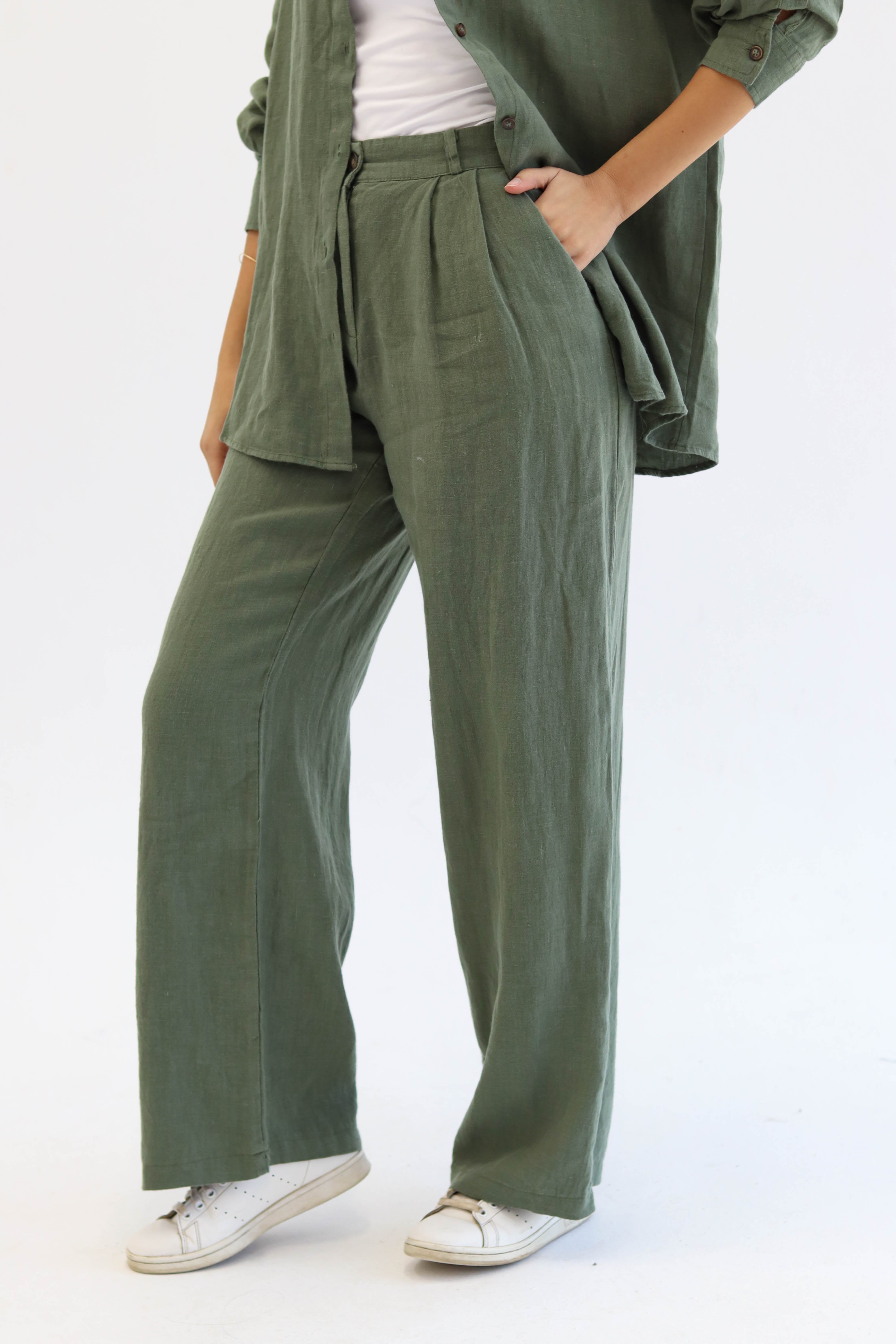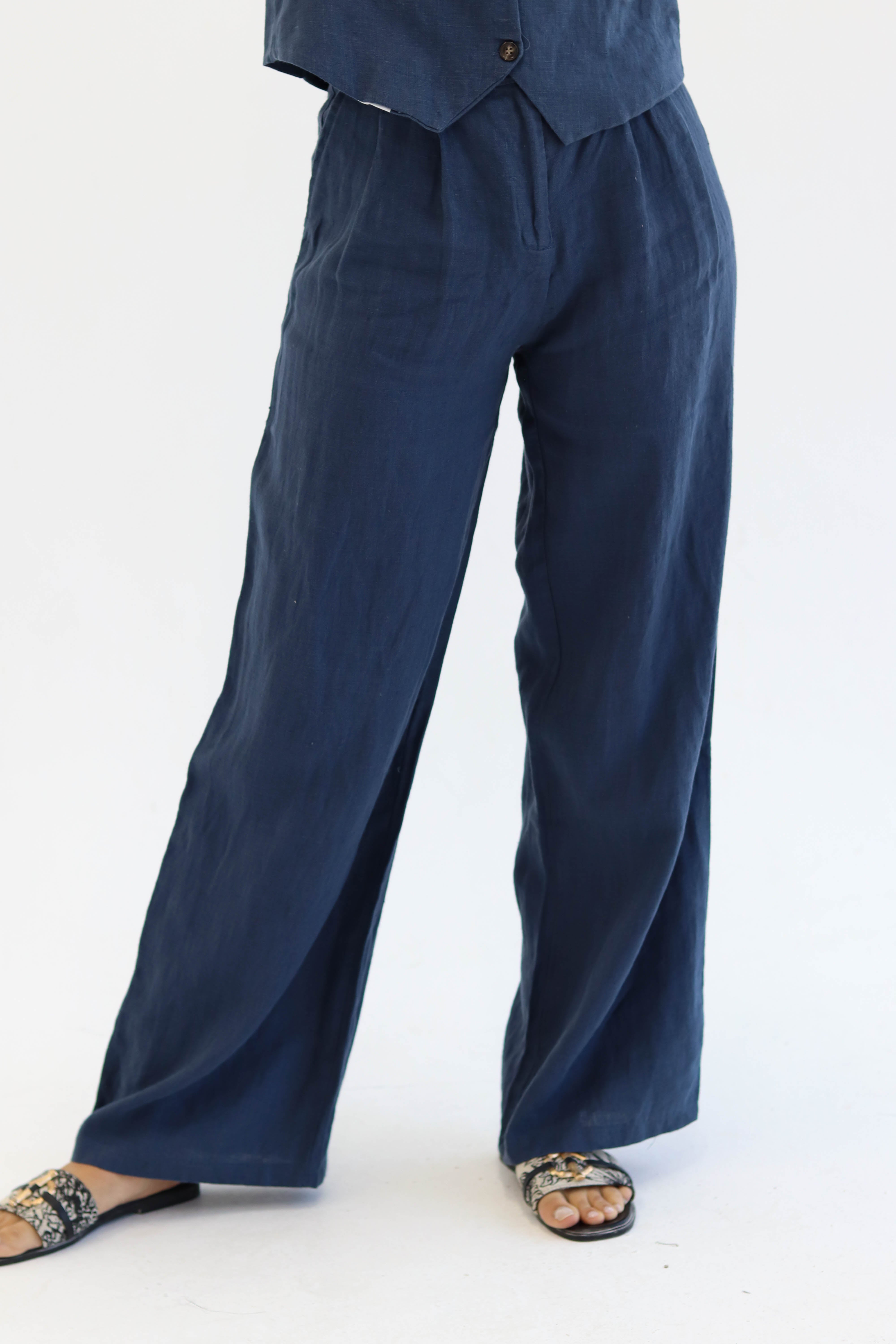 Grounded ease, in motion. The Dune Pants are crafted from pure linen with a relaxed, full-length silhouette that softens as it moves. Designed with a mid-rise waist, subtle pleating, and wide legs, they offer a natural rhythm between structure and fluidity. Whether paired with the Ray Vest or the Air Shirt, they bring quiet confidence to everyday dressing.