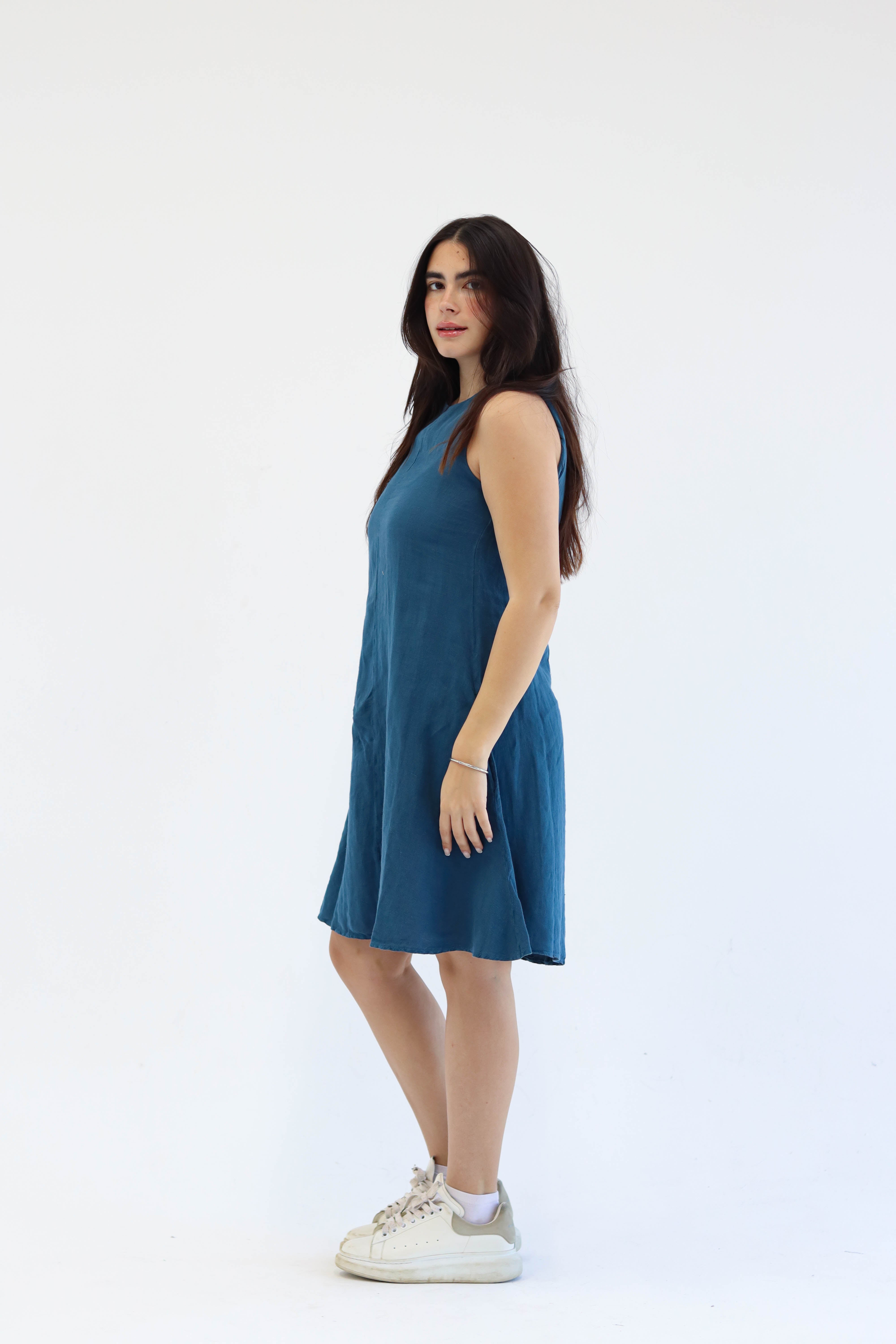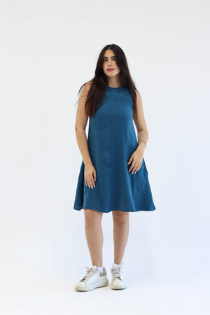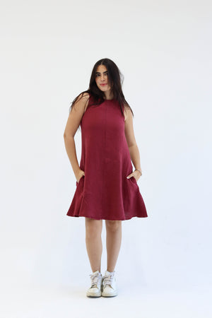 Uncomplicated, grounded, and full of quiet energy. The Ember Dress is cut in a relaxed A-line shape that offers movement without effort. Its sleeveless form and raw edges give it a sense of ease—made for days when you want to feel free, unfiltered, and completely at ease. It’s not here to impress; it’s here to express.