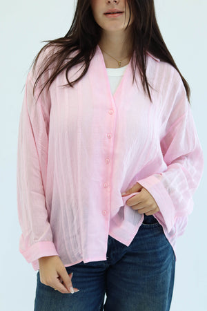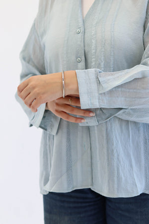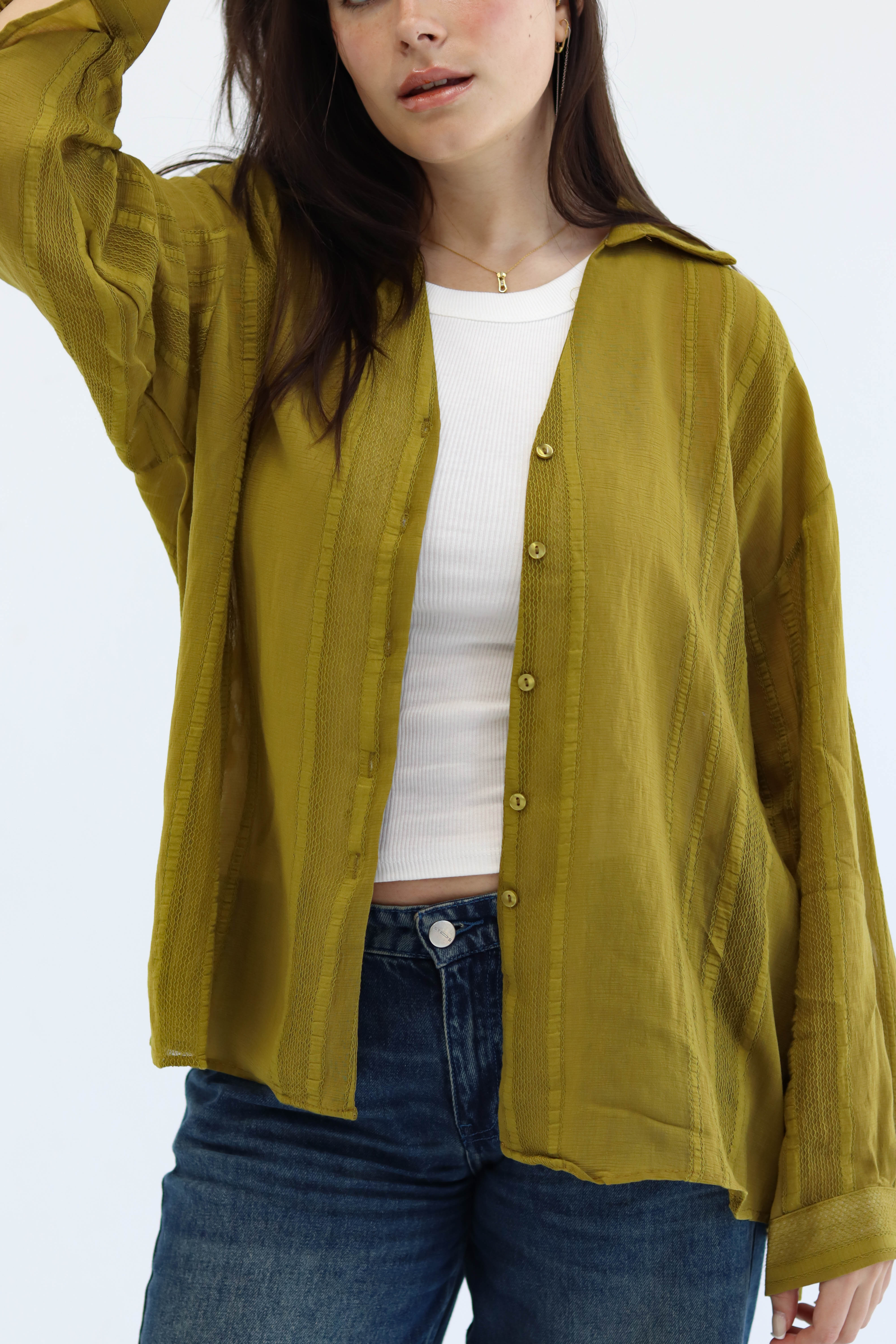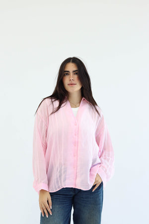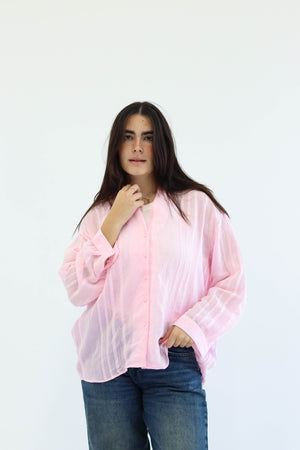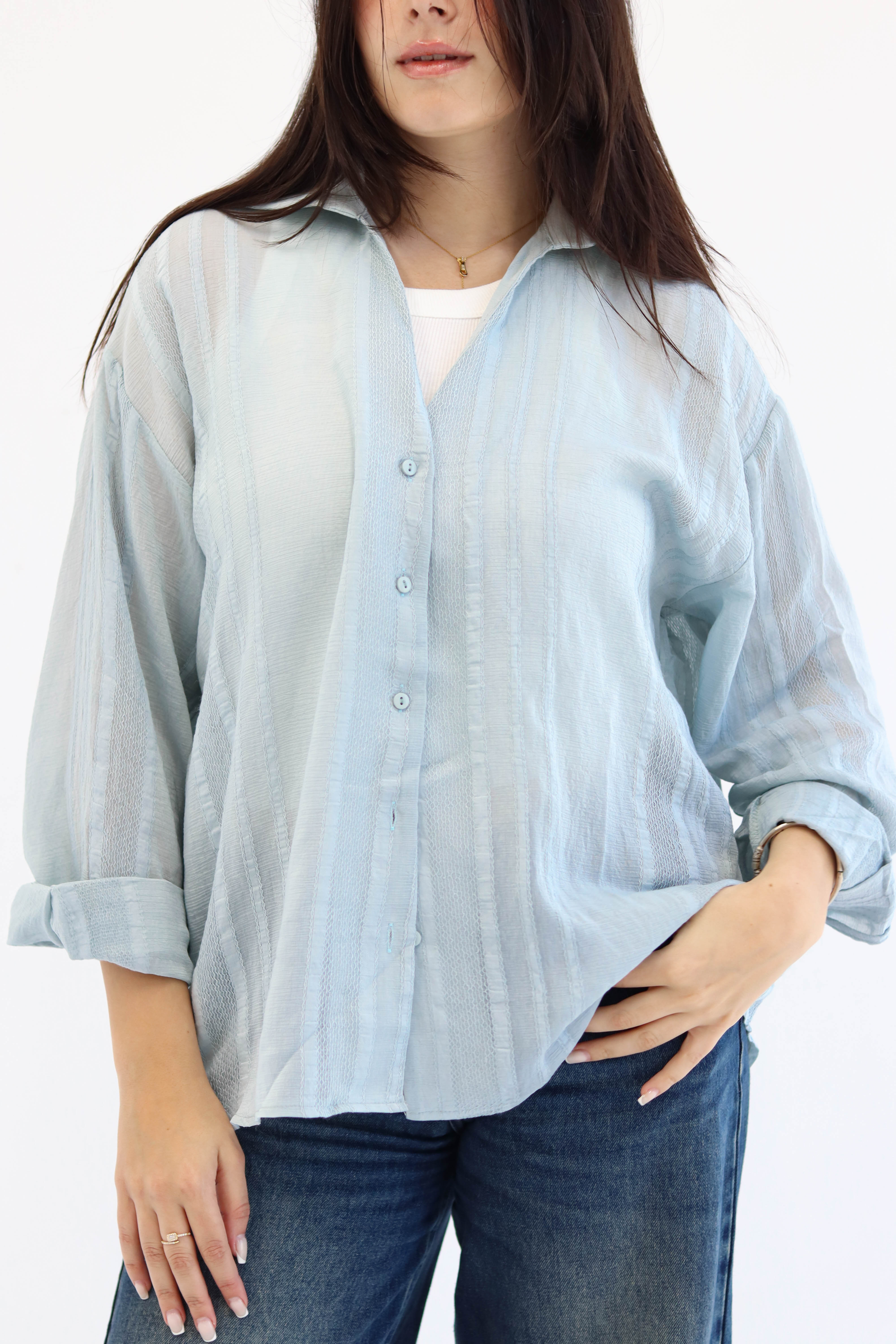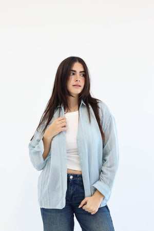 A whisper of texture. The Haze Shirt is made from a featherlight, semi-sheer fabric with a relaxed fit that layers effortlessly. Button it up, throw it over a tank, or wear it open at the beach — this piece was made for movement, light, and days that feel slow.