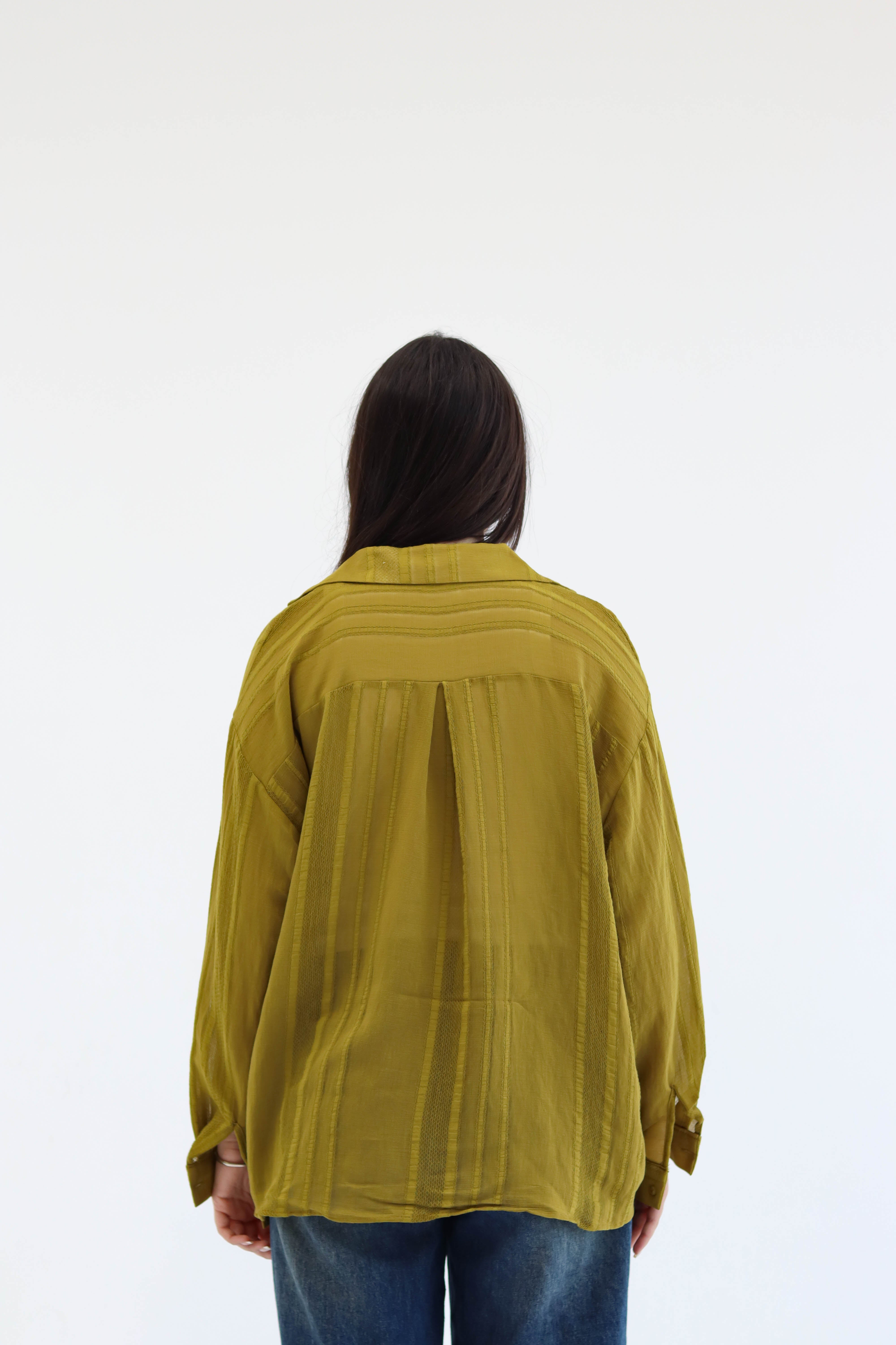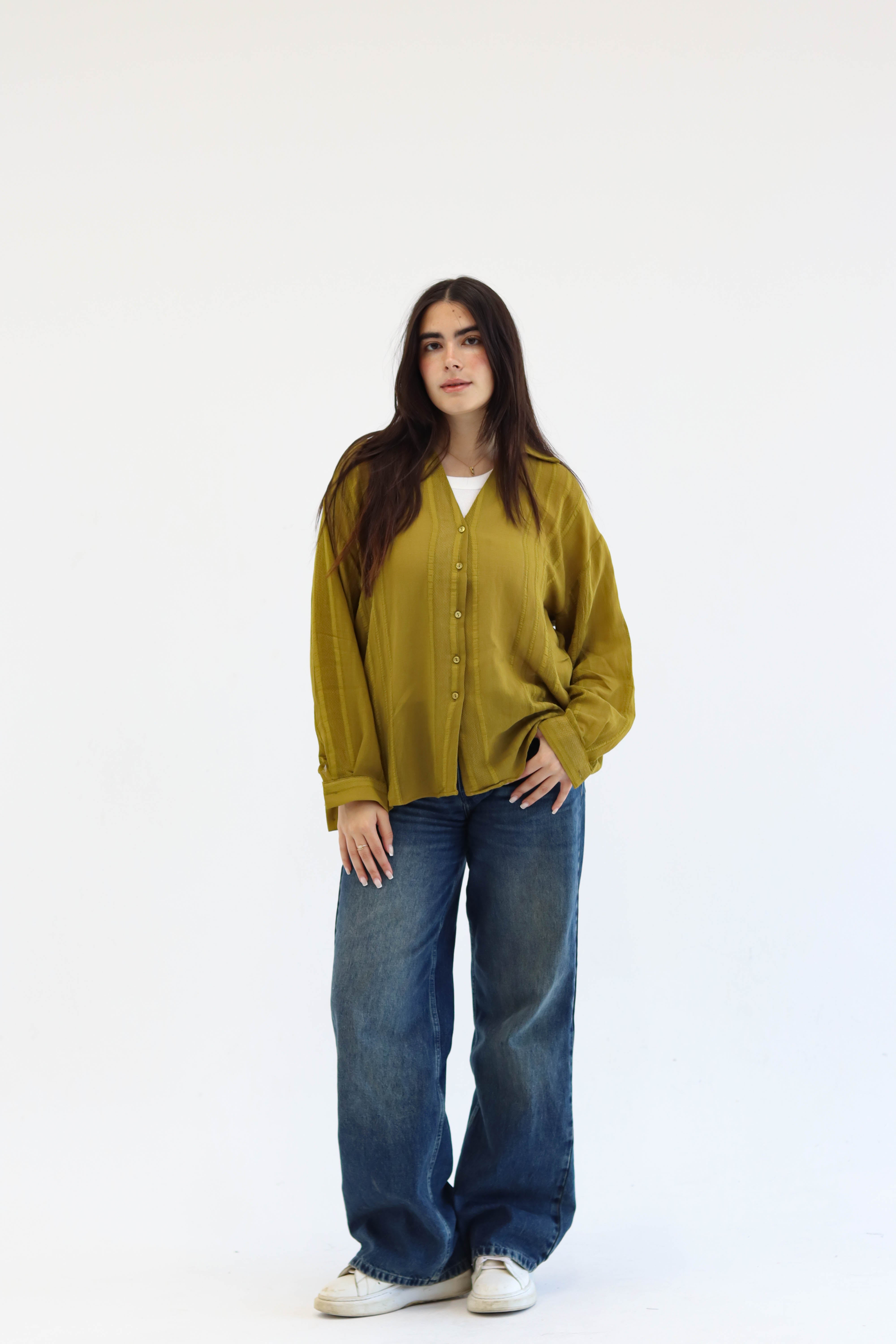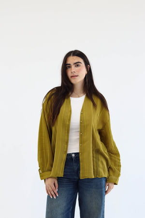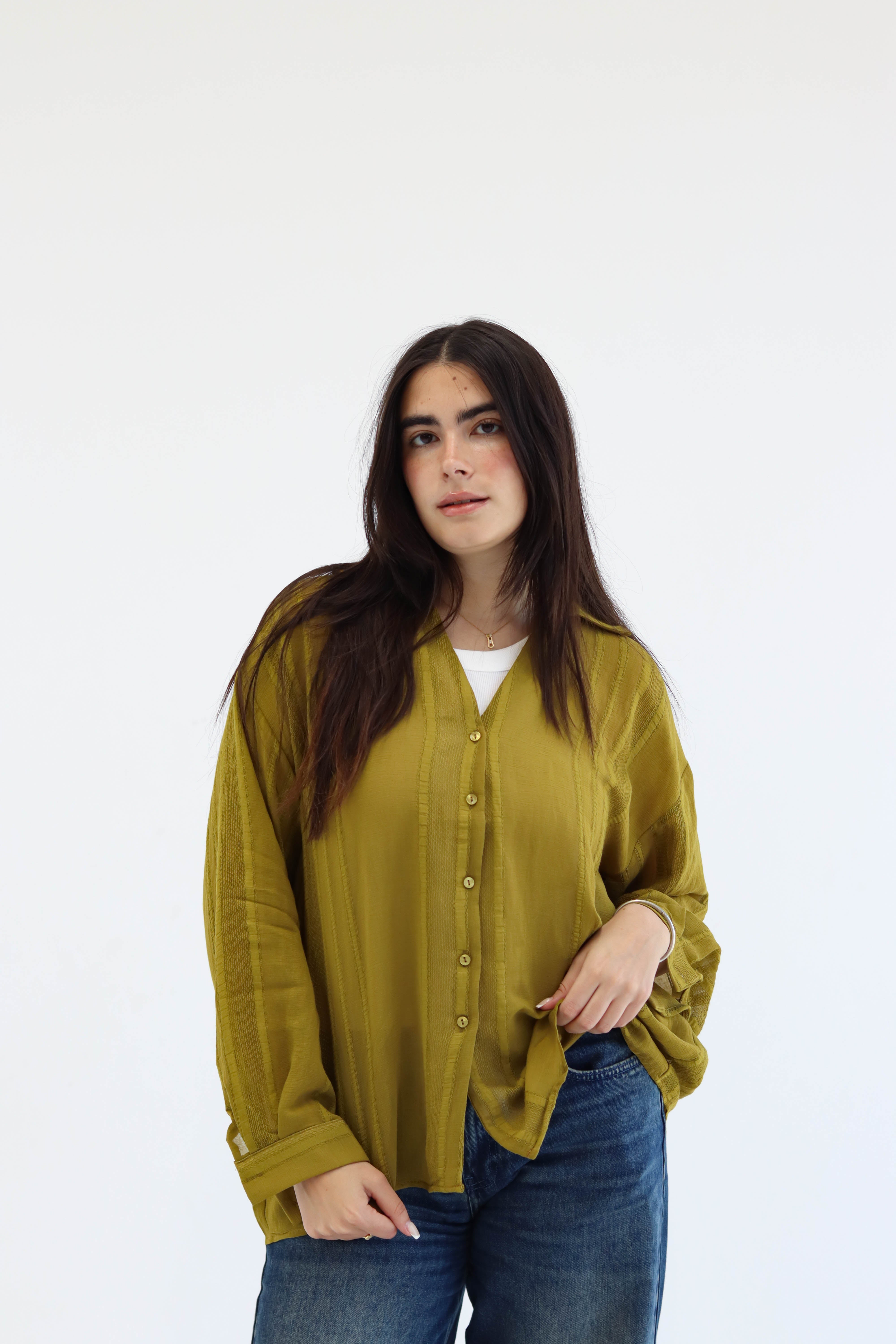 A whisper of texture. The Haze Shirt is made from a featherlight, semi-sheer fabric with a relaxed fit that layers effortlessly. Button it up, throw it over a tank, or wear it open at the beach — this piece was made for movement, light, and days that feel slow.