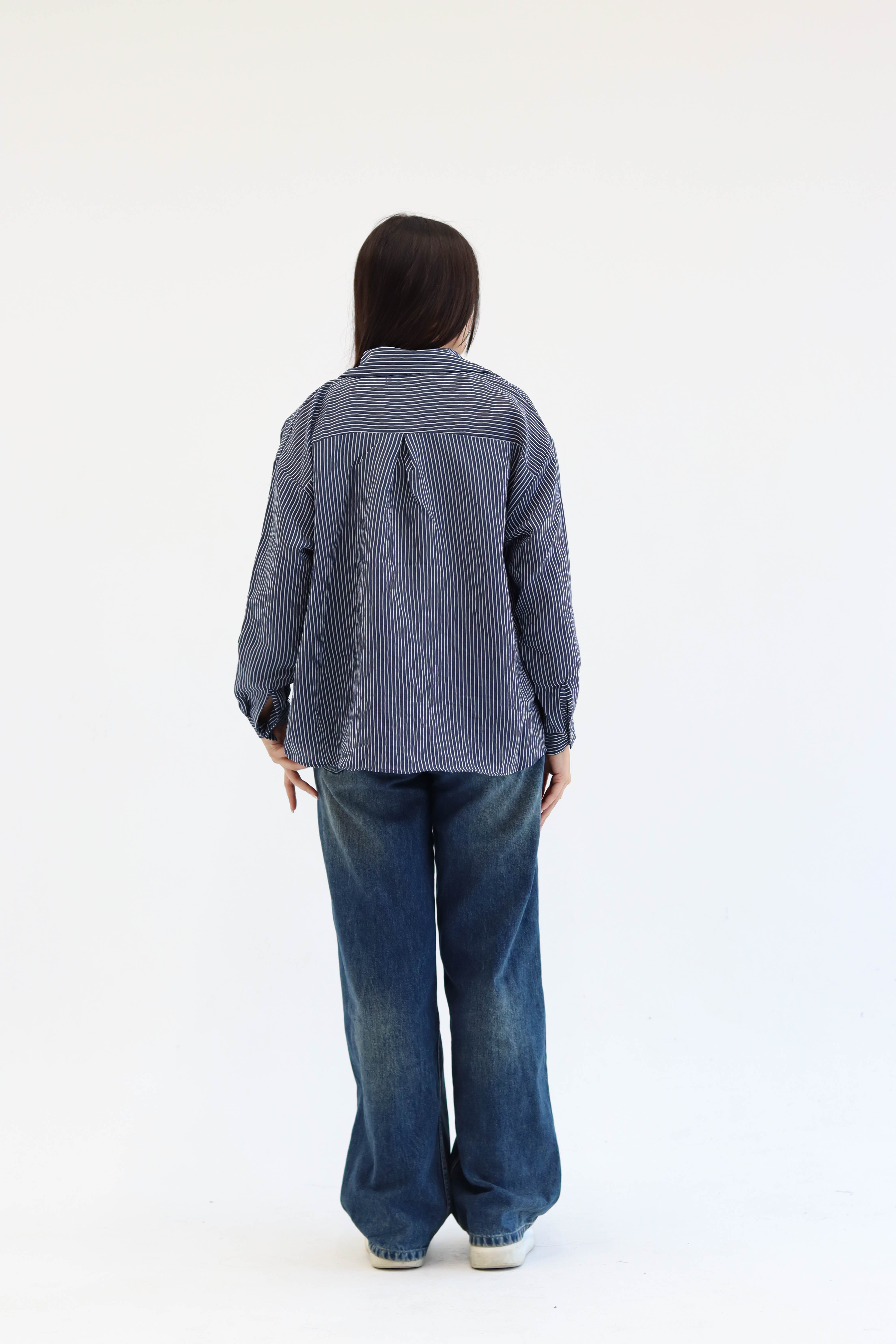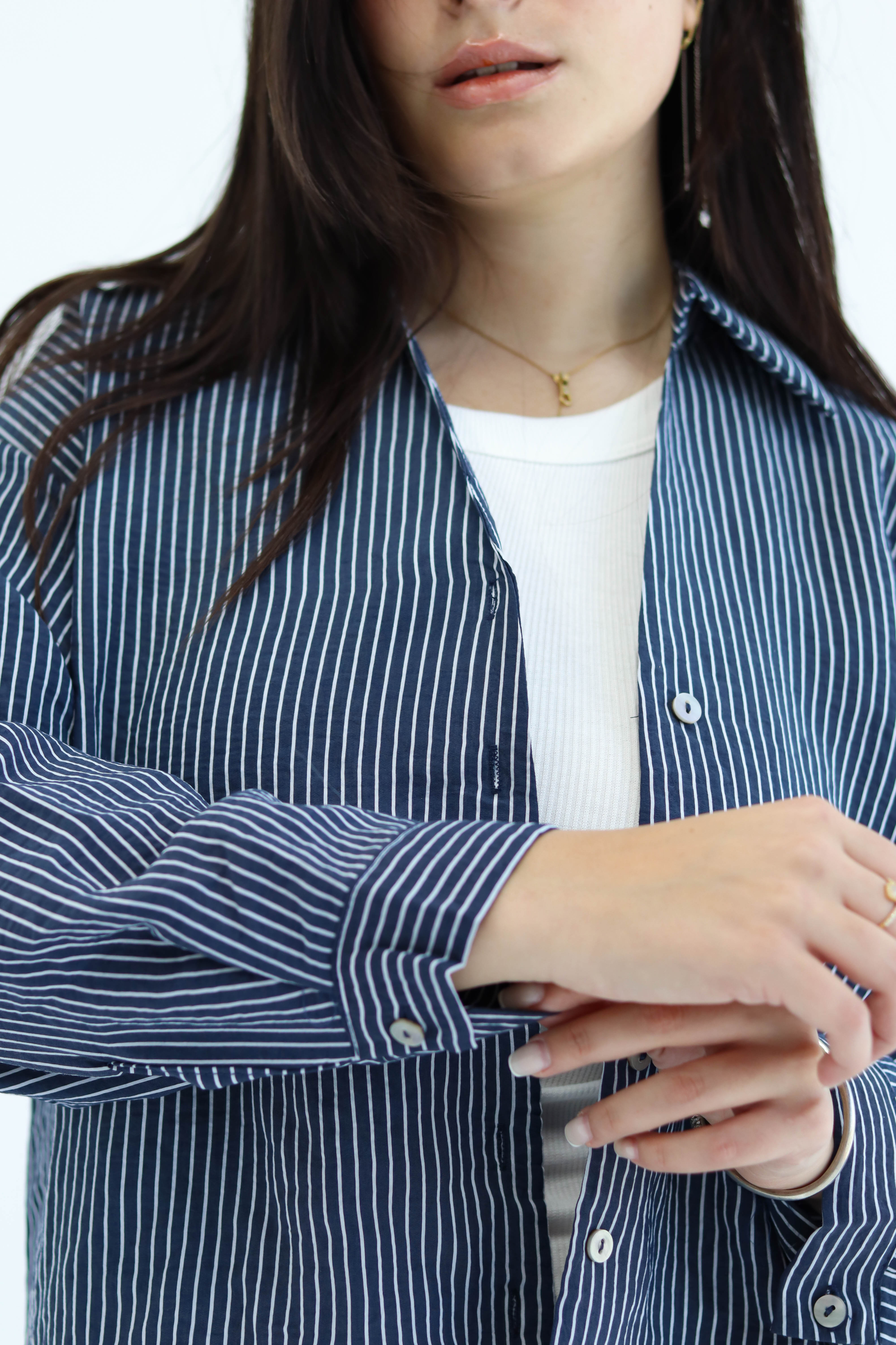 A classic redefined. The Line Shirt features crisp vertical stripes on a relaxed silhouette, offering structure without stiffness. Wear it tucked, open, or layered — this piece moves easily between polish and ease. Made for quiet confidence and everyday rhythm.
