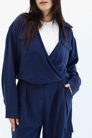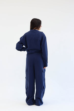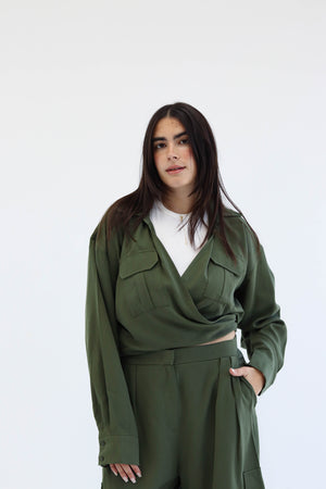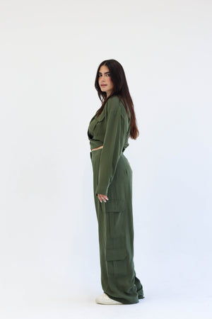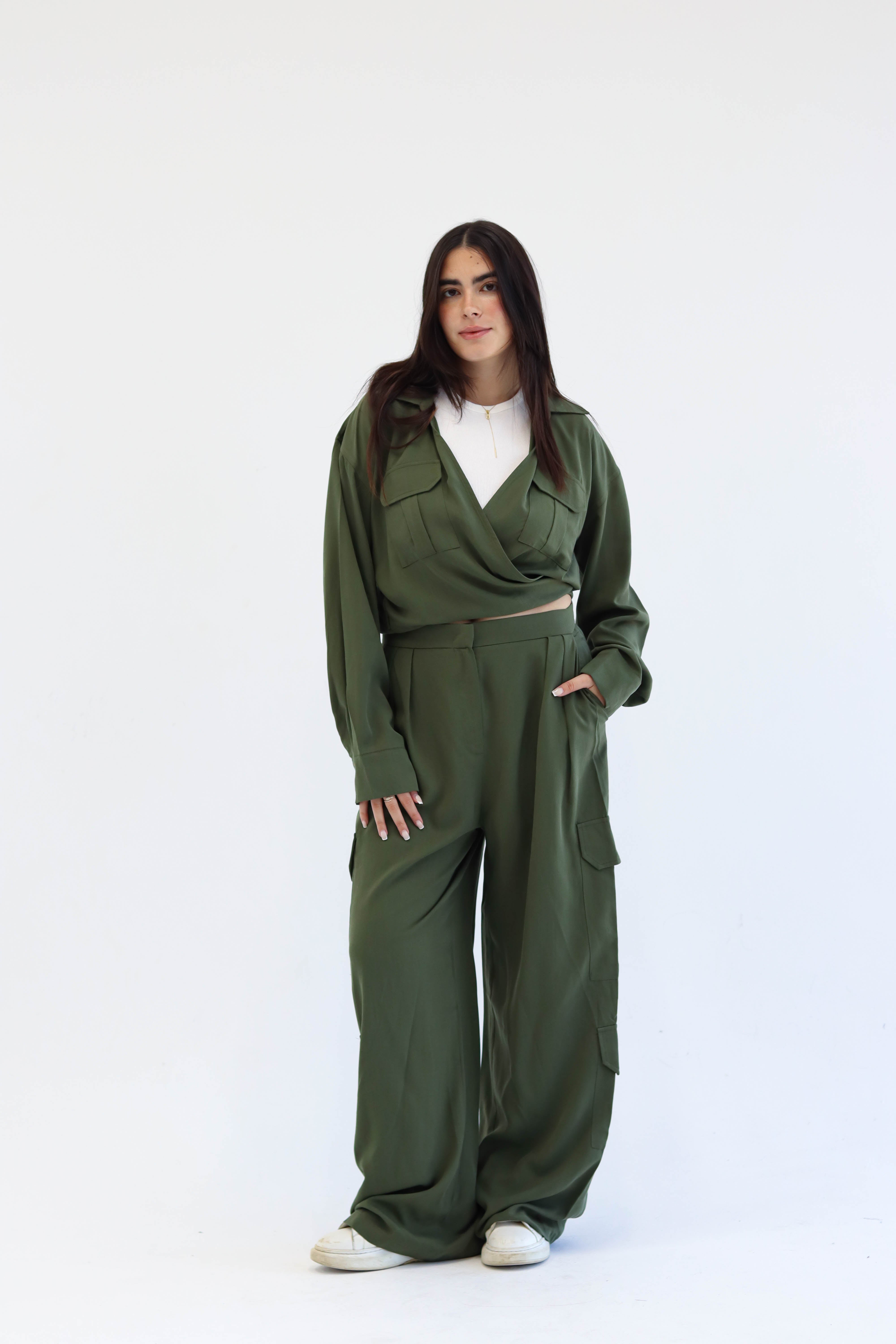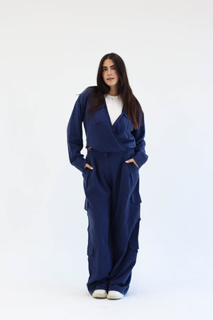 Built for movement, designed with intention. The Motion Set features a wrap-style top and cargo-style trousers that balance structure with ease. Its relaxed silhouette and considered details offer both utility and flow — made for days when you're doing it all, and want to feel grounded doing it. Functional, fluid, and unmistakably you.