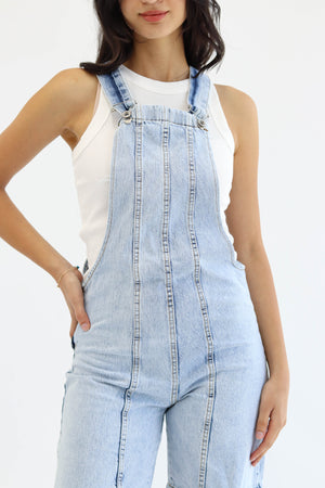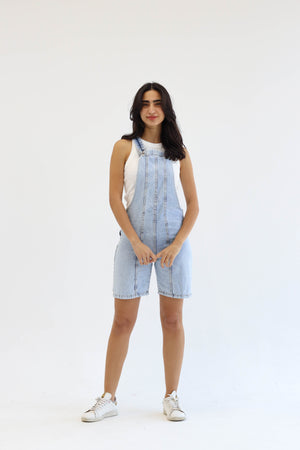 An easygoing take on denim, this light wash playsuit brings effortless charm to warmer days. With its classic bib-front, relaxed fit, and just-above-the-knee cut, it’s the kind of one-and-done outfit you’ll reach for on repeat. Style it solo or layer it up—this staple does both.