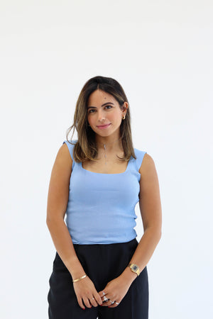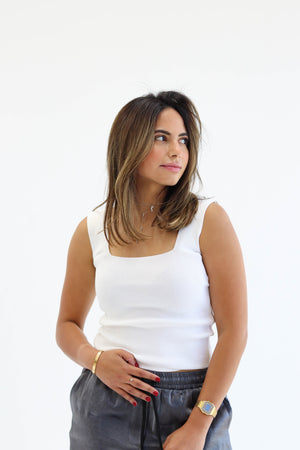 A modern staple with quiet strength. The Square Tank is crafted from a soft ribbed knit, cut with a wide, squared neckline that frames the shoulders and feels fresh yet timeless. Its close, comfortable fit makes it easy to wear alone or layered — designed for days when simplicity speaks loudest.